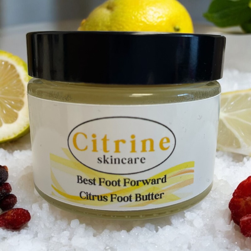 Finish off with a buttery delight. Time to moisturise. A firm butter balm that is deeply moisturising without greasiness and that deliciously citrusy scent that leaves feet soft, fresh and deodorised.